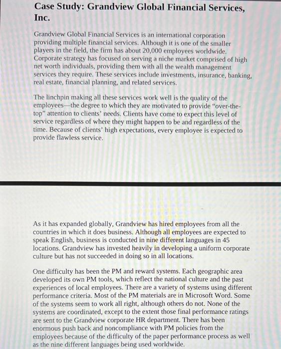 Solved Case Study Grandview Global Financial Services Inc Chegg Com
