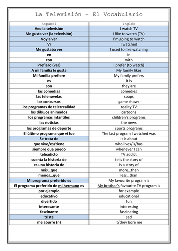 Ks4 Spanish Tv Listening And Vocab Teaching Resources